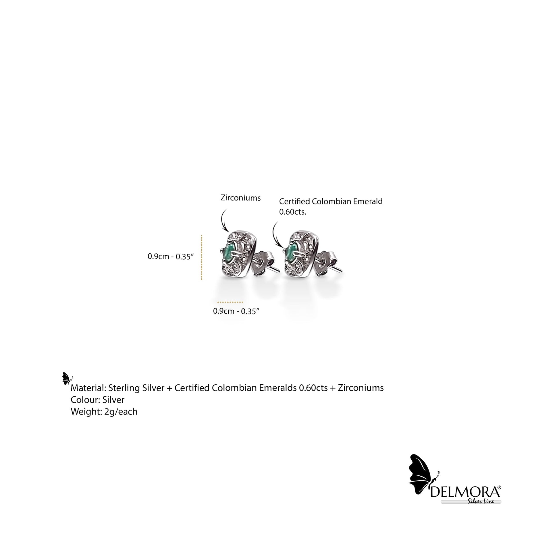 Unveil pure?elegance with these stunning silver earrings embellished with a certified Colombian emerald. The timeless design and sparkling zirconiums exude sophistication that will enhance any outfit.
