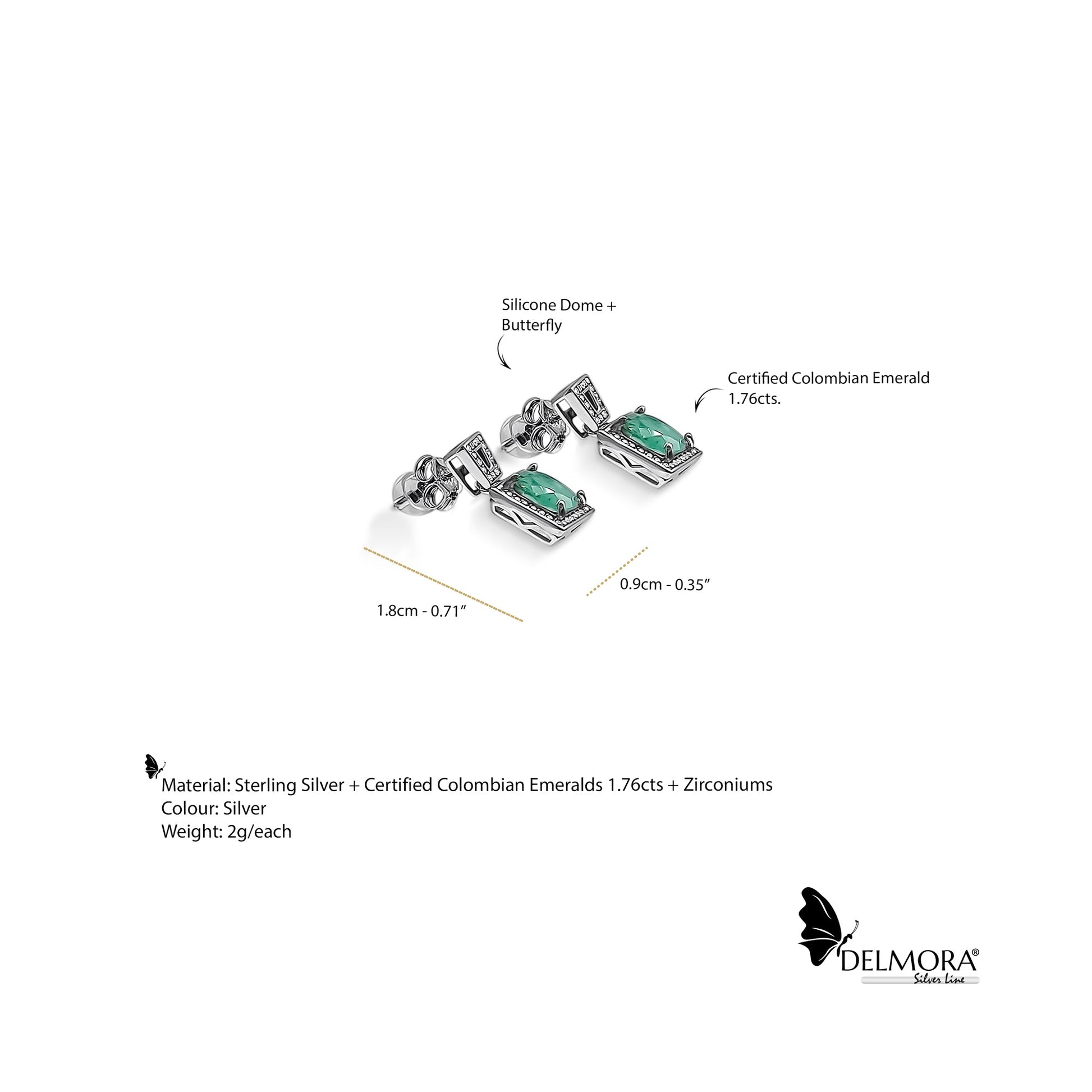 Material: Sterling Silver + Certified Colombian Emeralds + Zirconiums? About the emeralds: 1.76ct Oval Cut with Certificate of Authenticity Origin: Boyaca, Colombia. |