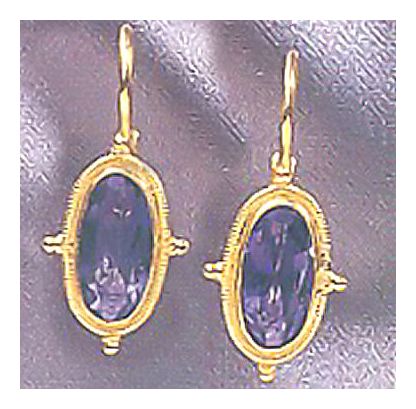 This simple 14k gold Victorina looking glass design highlights an iolite stone that has been precisely hand cut and faceted to bring out its brilliance. European backs for pierced ears.