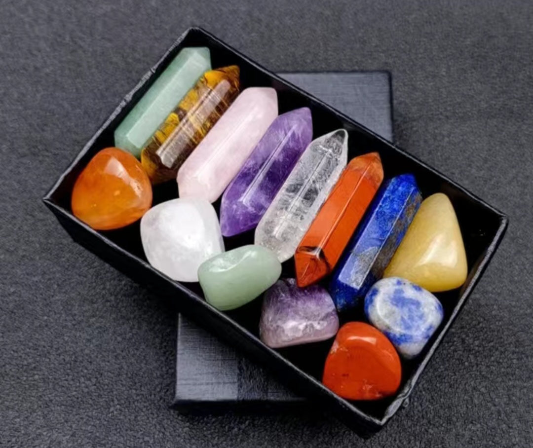 14pcs Pointed Quartz Stone,Chakra Healing Stones Set,Hexagon Rose Quartz Gems For Meditation Bedroom Decor,Unique Gift Box Design