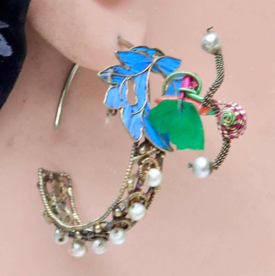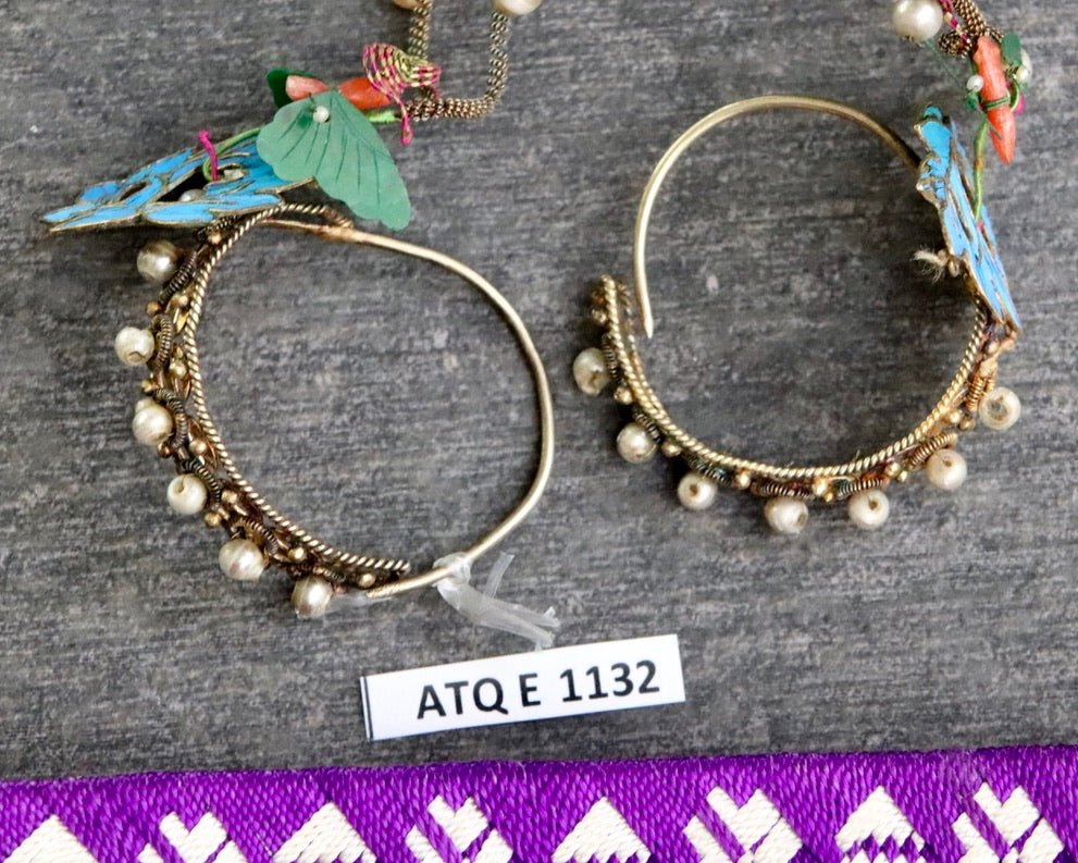 These?hooped?butterfly earrings are antiques that originate from the Qing Dynasty, where a noble woman would have worn an intricate design such as this for a special occasion.