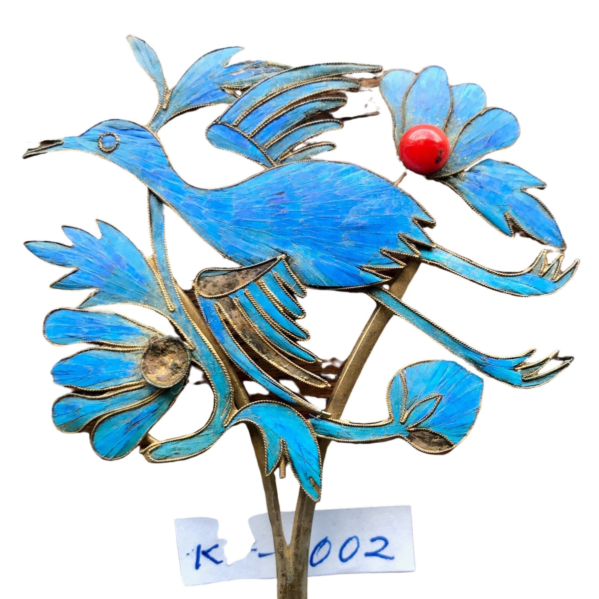 Known as üc´ä / µã´ä to the Chinese, Tian-Tsui translates to dotting with kingfishers. Its a traditional practice in which tiny kingfisher feathers were cut to size and incorporated into sterling silver and silver gilt jewelry to create a dazzling fluorescent blue finish. The technique was lost with the Chinese cultural revolution in the 1940's.