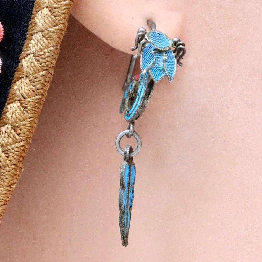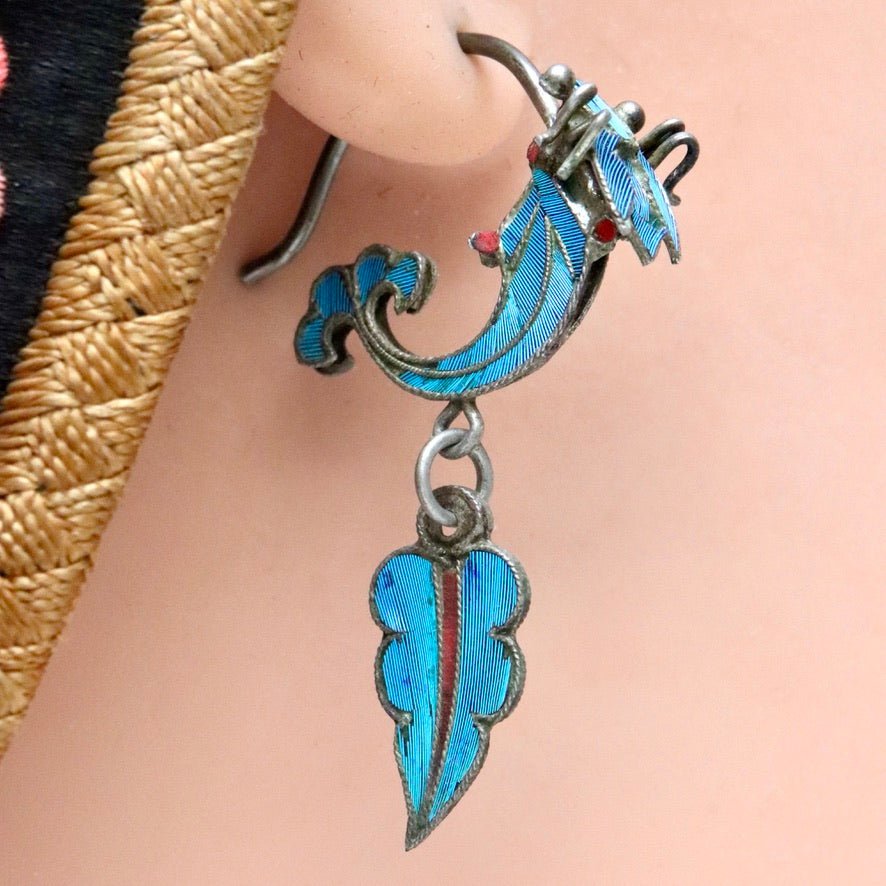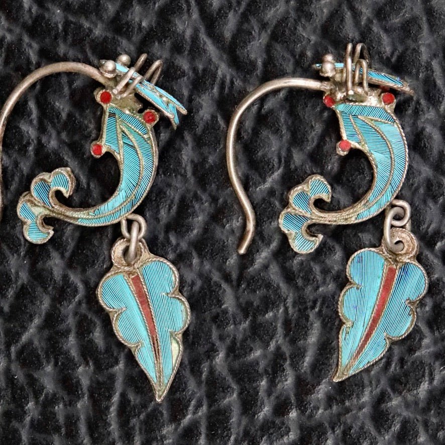 These dangle earrings are antiques that originate from the Qing Dynasty, where a noble woman would have worn an intricate design such as this for a special occasion.