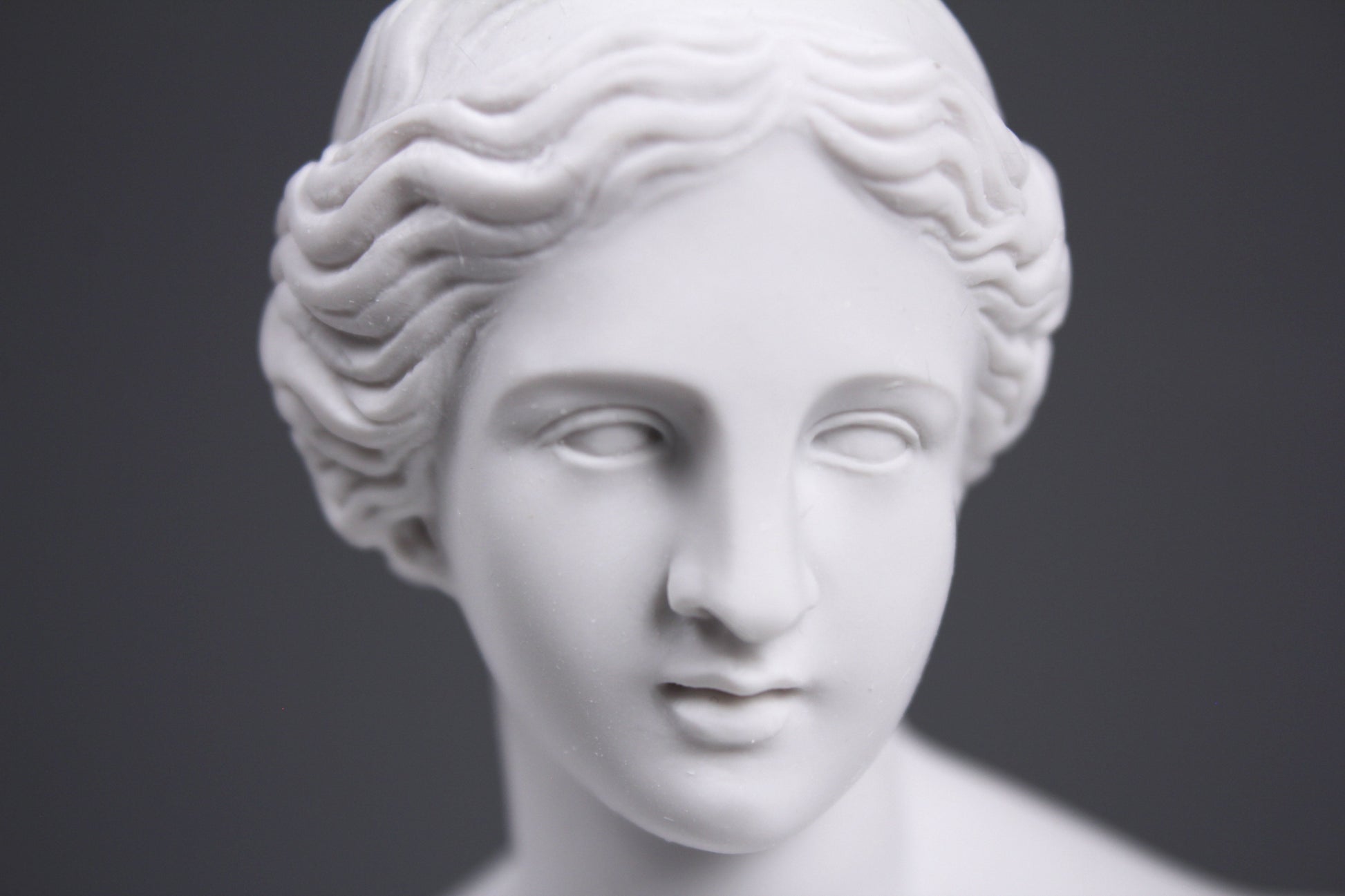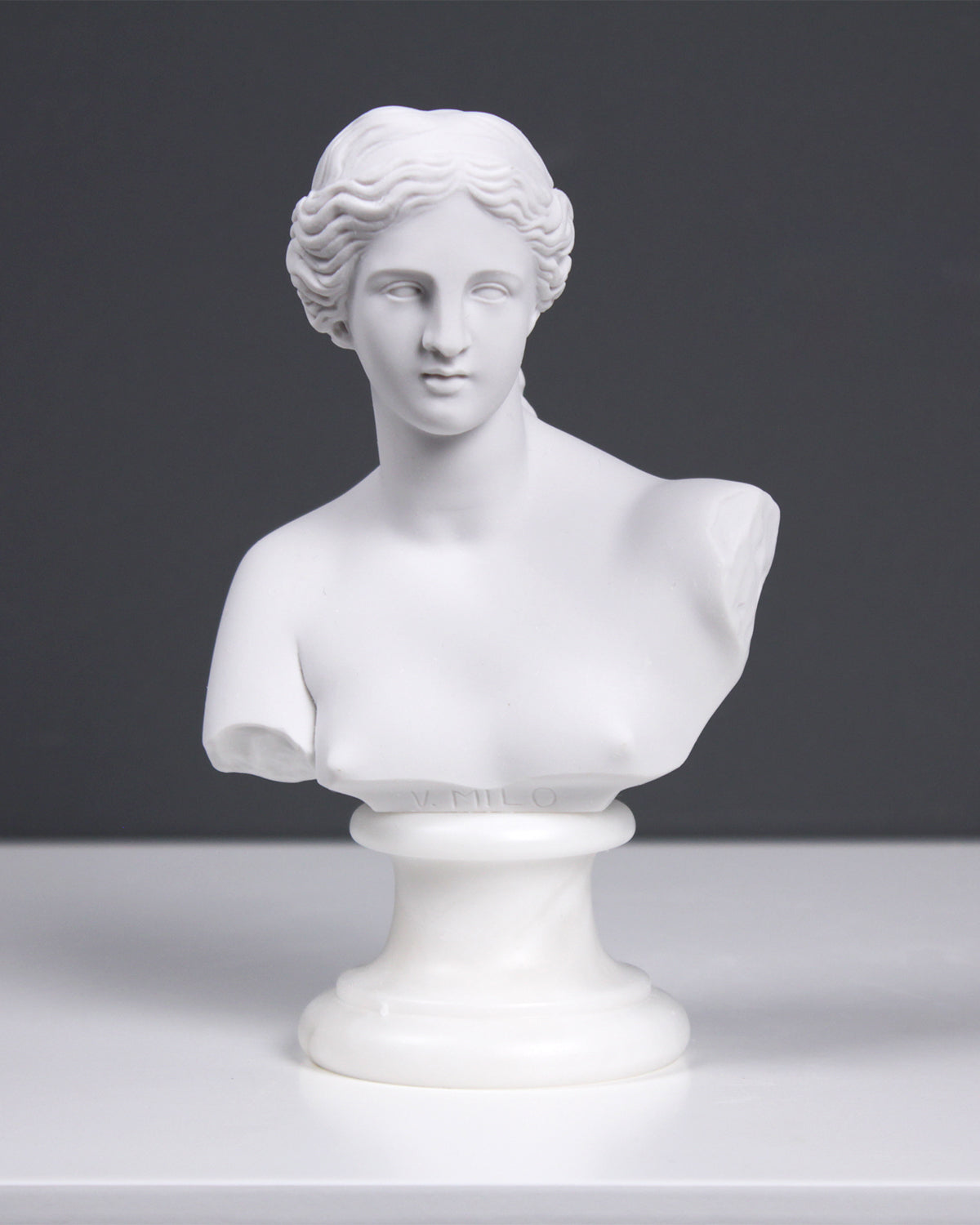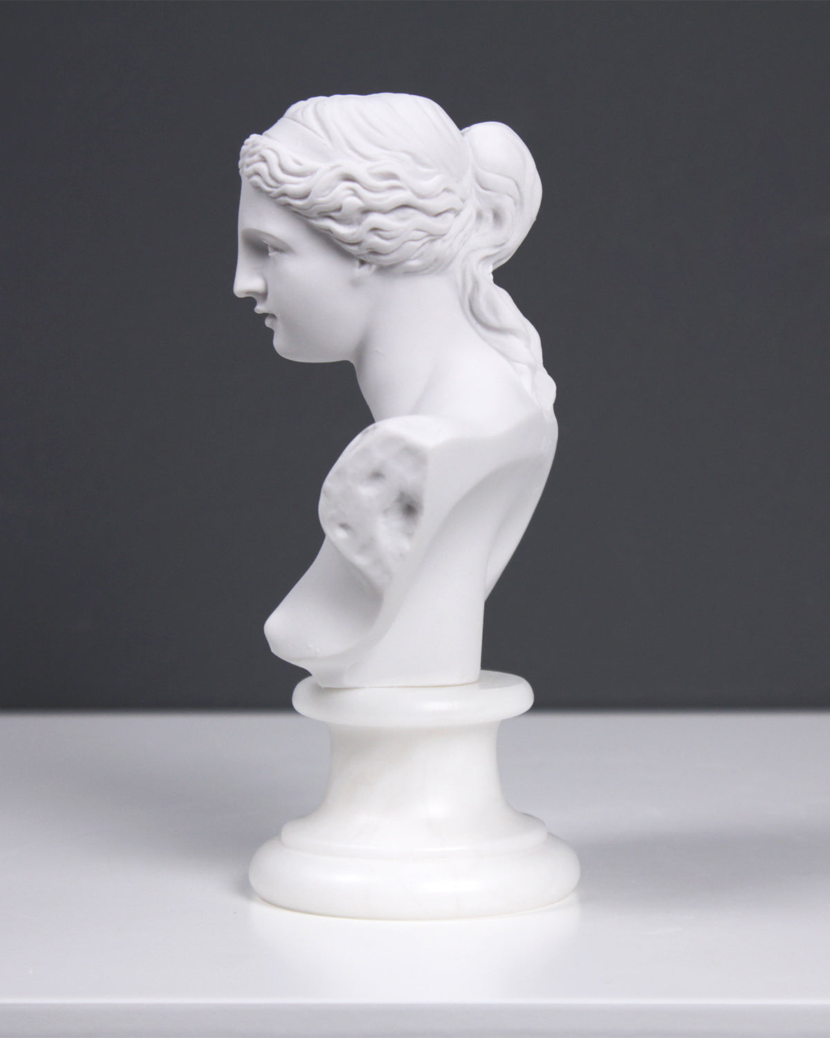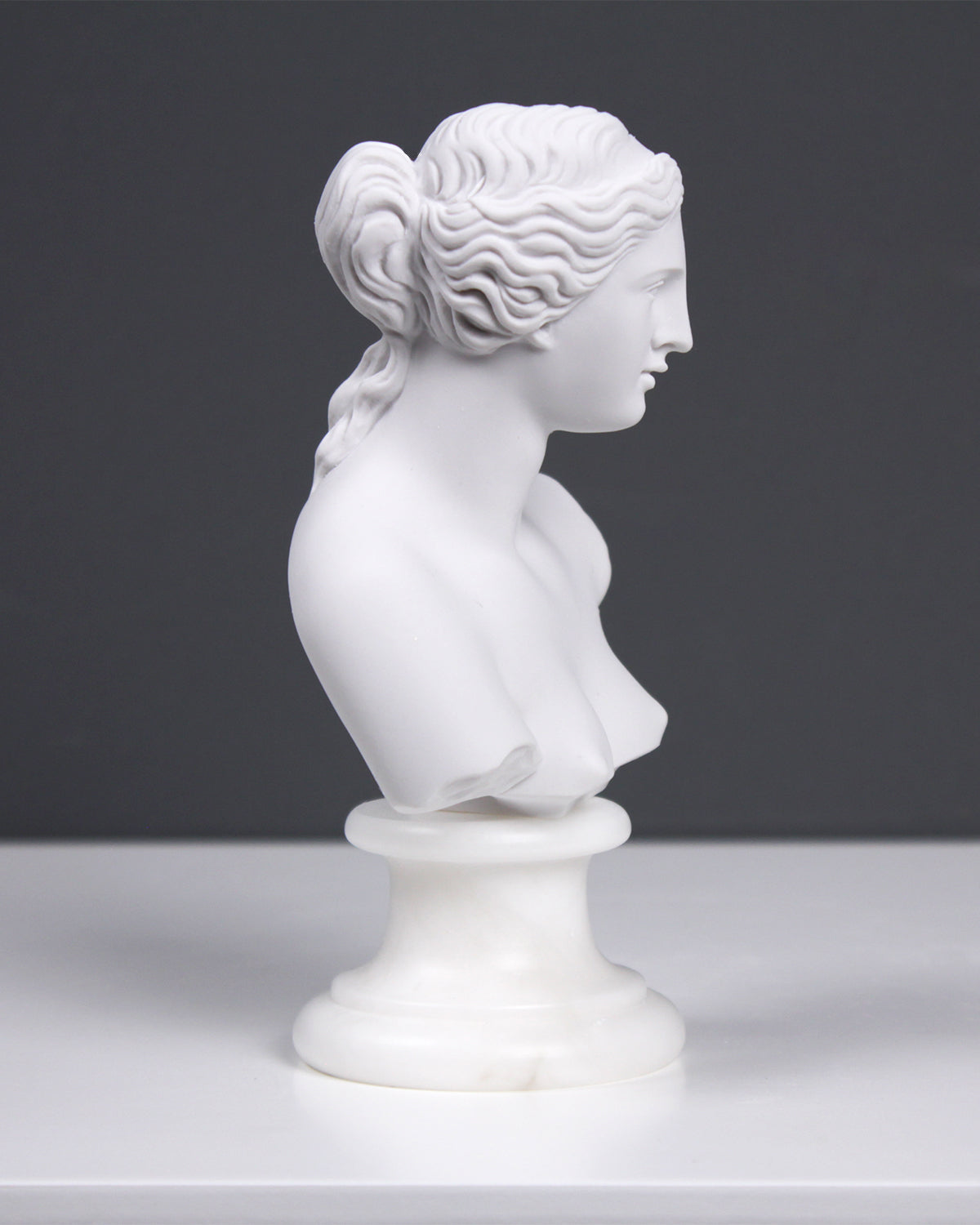 Our Aphrodite Bust Statue is a reduction bust after an Italian antique. A statue combining the delicacy and sensual attractiveness of the Greek goddess of love. This small aphrodite bust is ideal for display on any shelf or table.