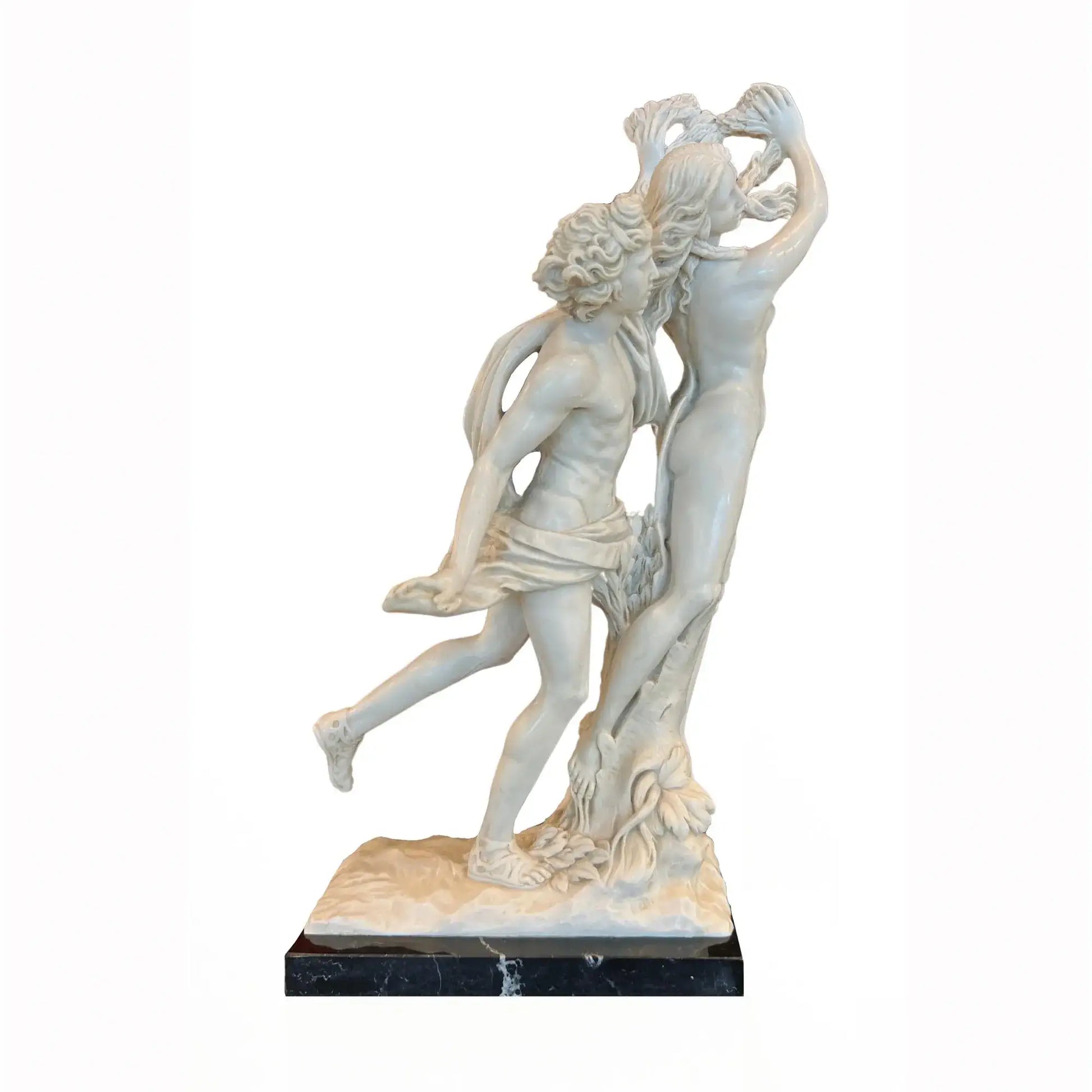 Questa ¨¨ una riproduzione in marmo di Carrara dell'iconica scultura Apollo e Dafne di Gian Lorenzo Bernini, esposta nella Galleria Borghese a Roma. Questa scultura, di 49 cm di altezza, cattura il drammatico momento della metamorfosi di Dafne che si trasforma in un albero di alloro per sfuggire ad Apollo.