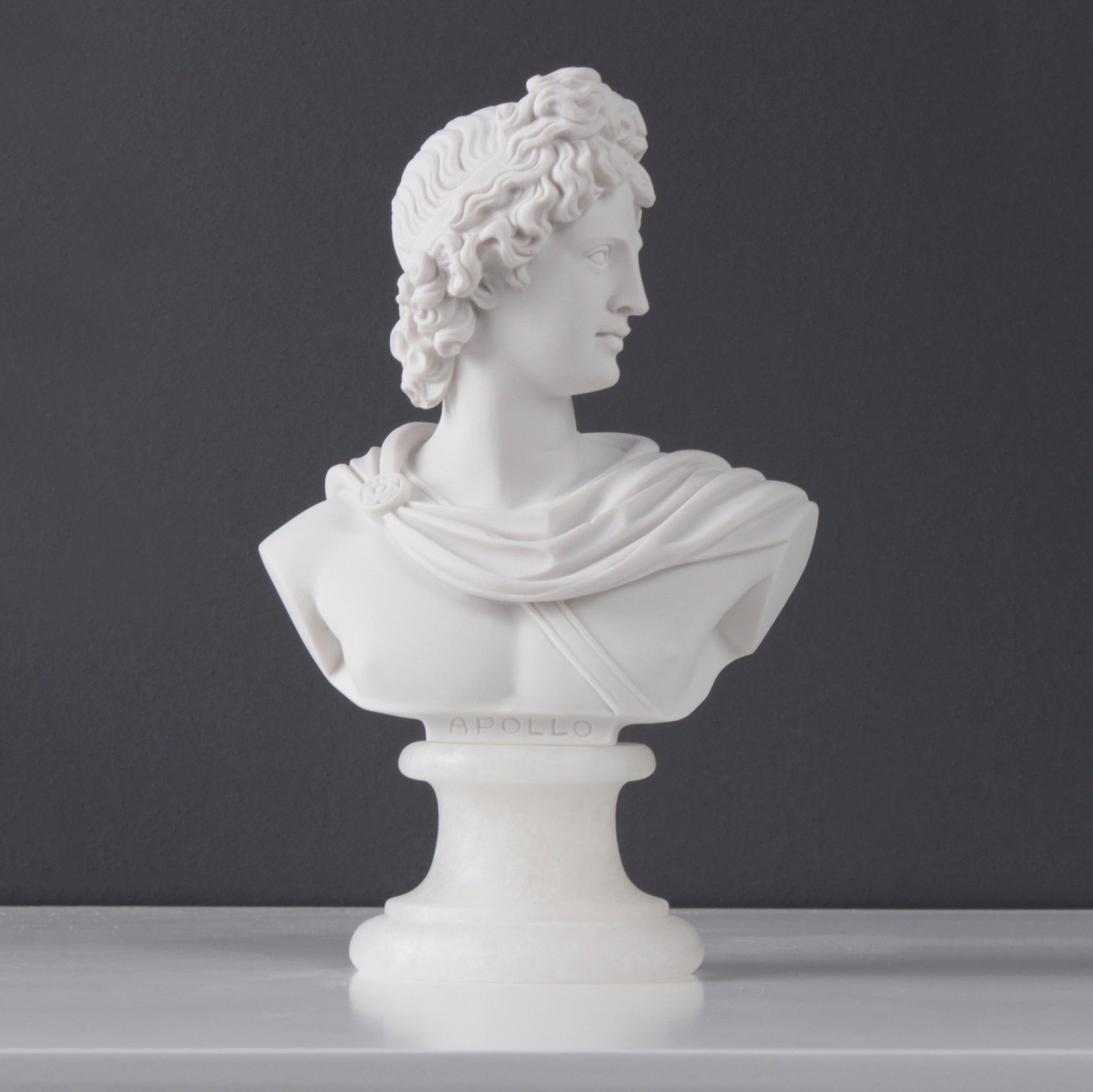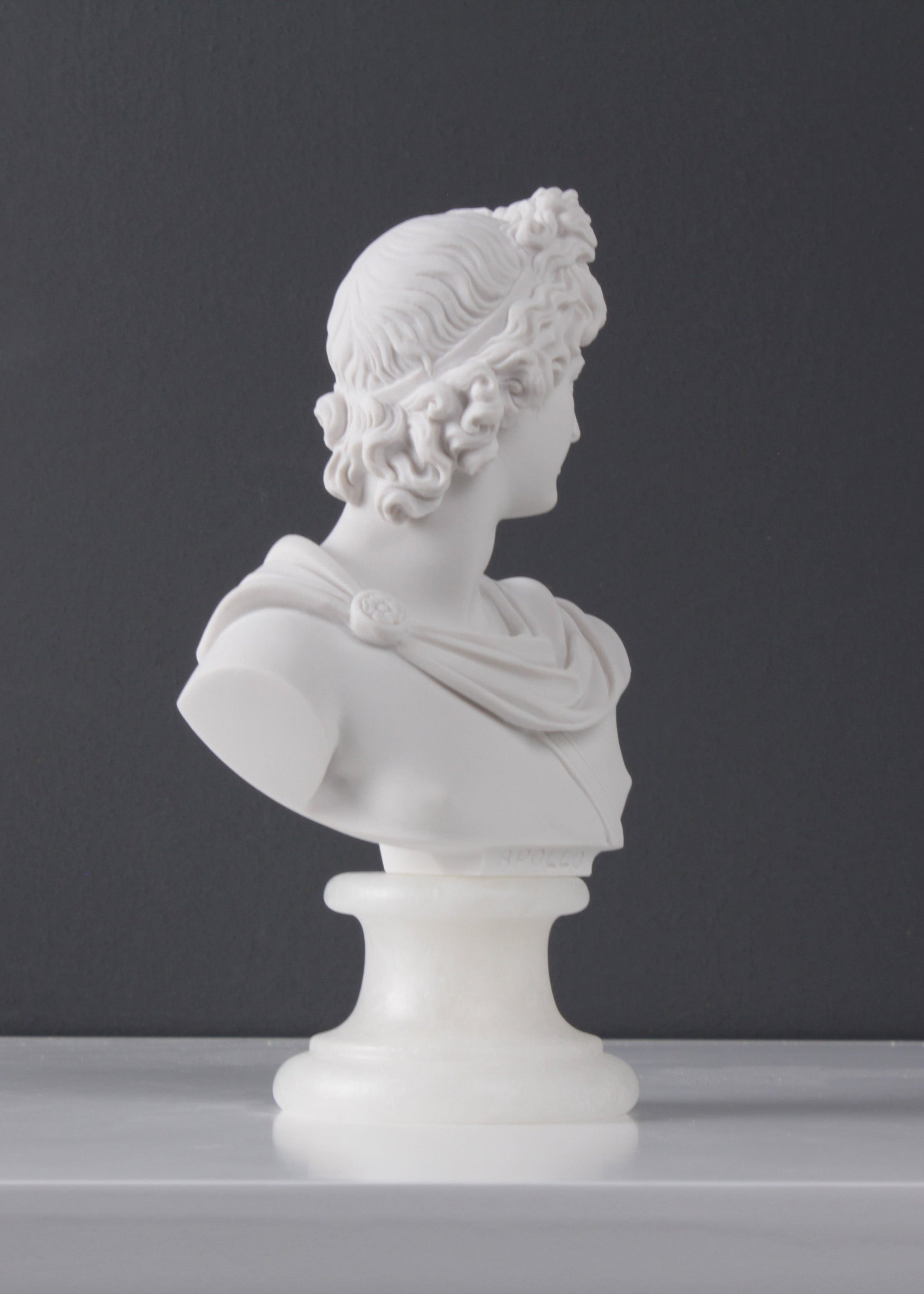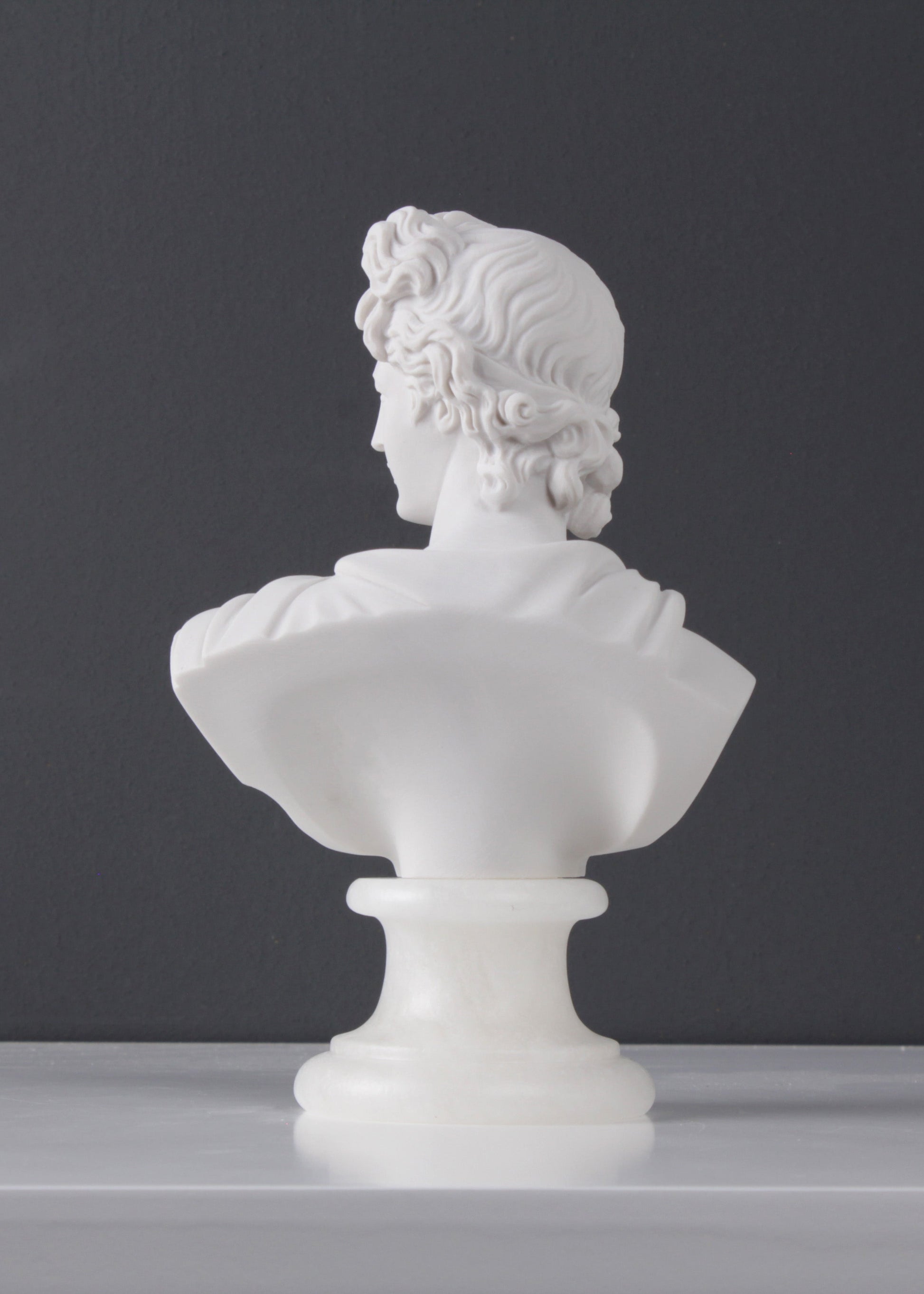 This bust is inspired by a full marble statue, said to be the work of Leochares, which is housed in the great collection of the Vatican, Rome, Italy.