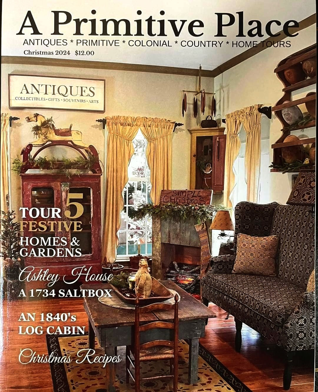 Simple Christmas accents nicely complement their redware, butter mold, wooden bowl, and bee sting crock collections while being a more manageable holiday decorating option without taking away from the beauty of their antiques.