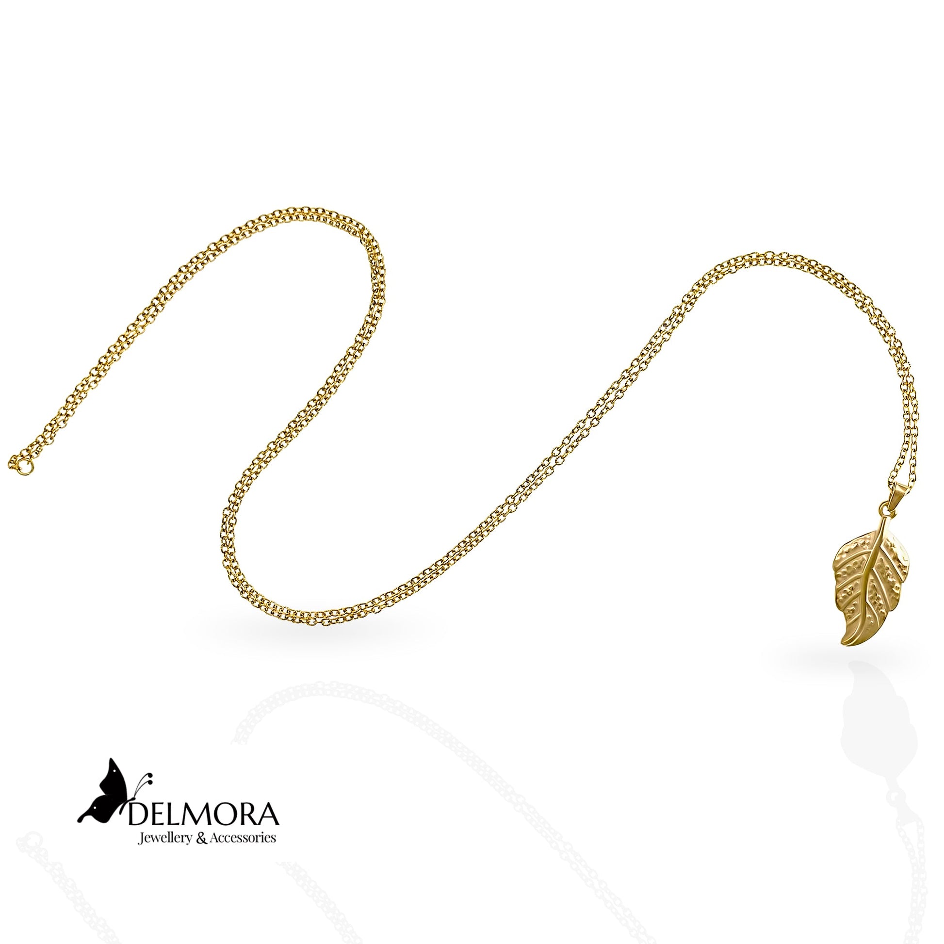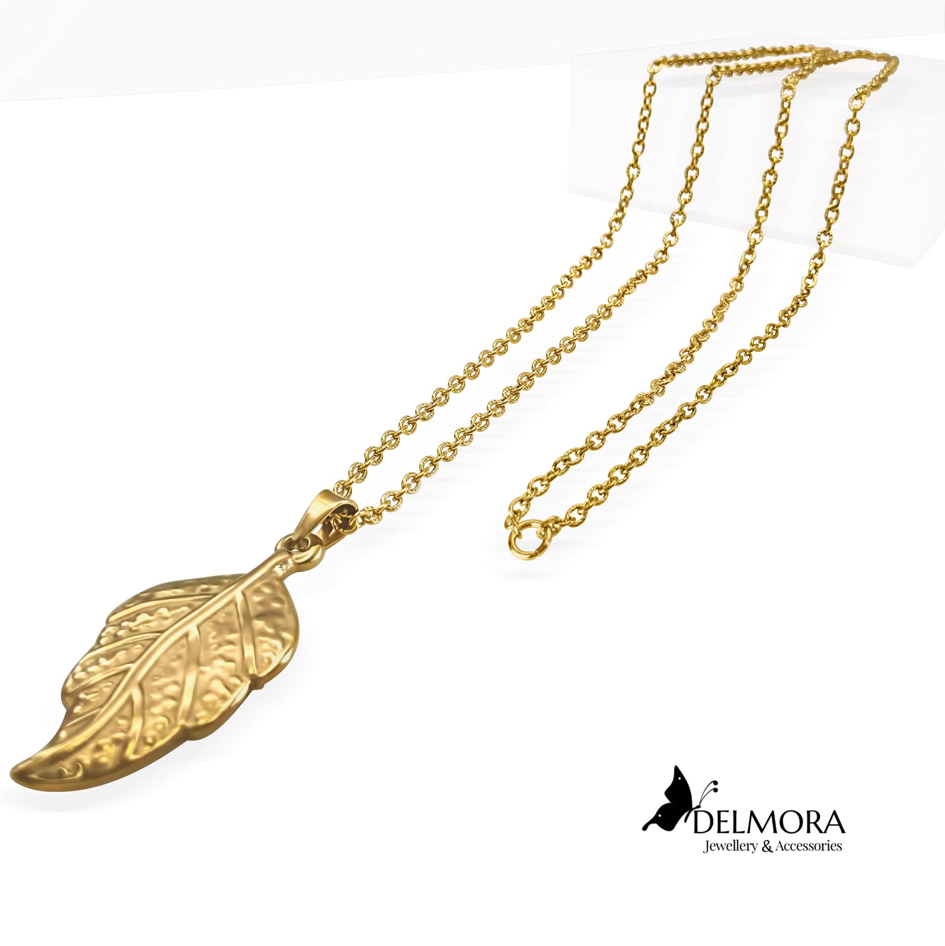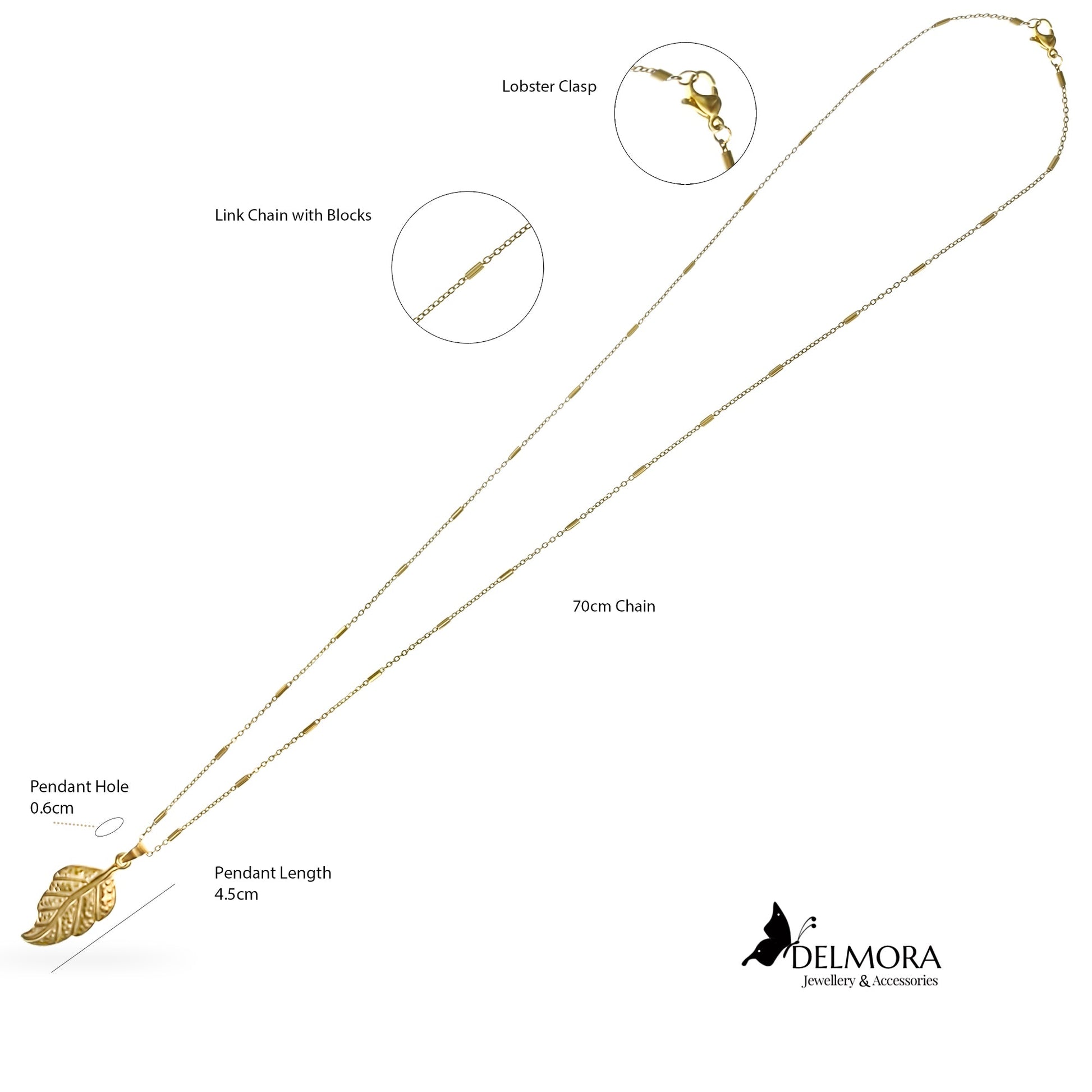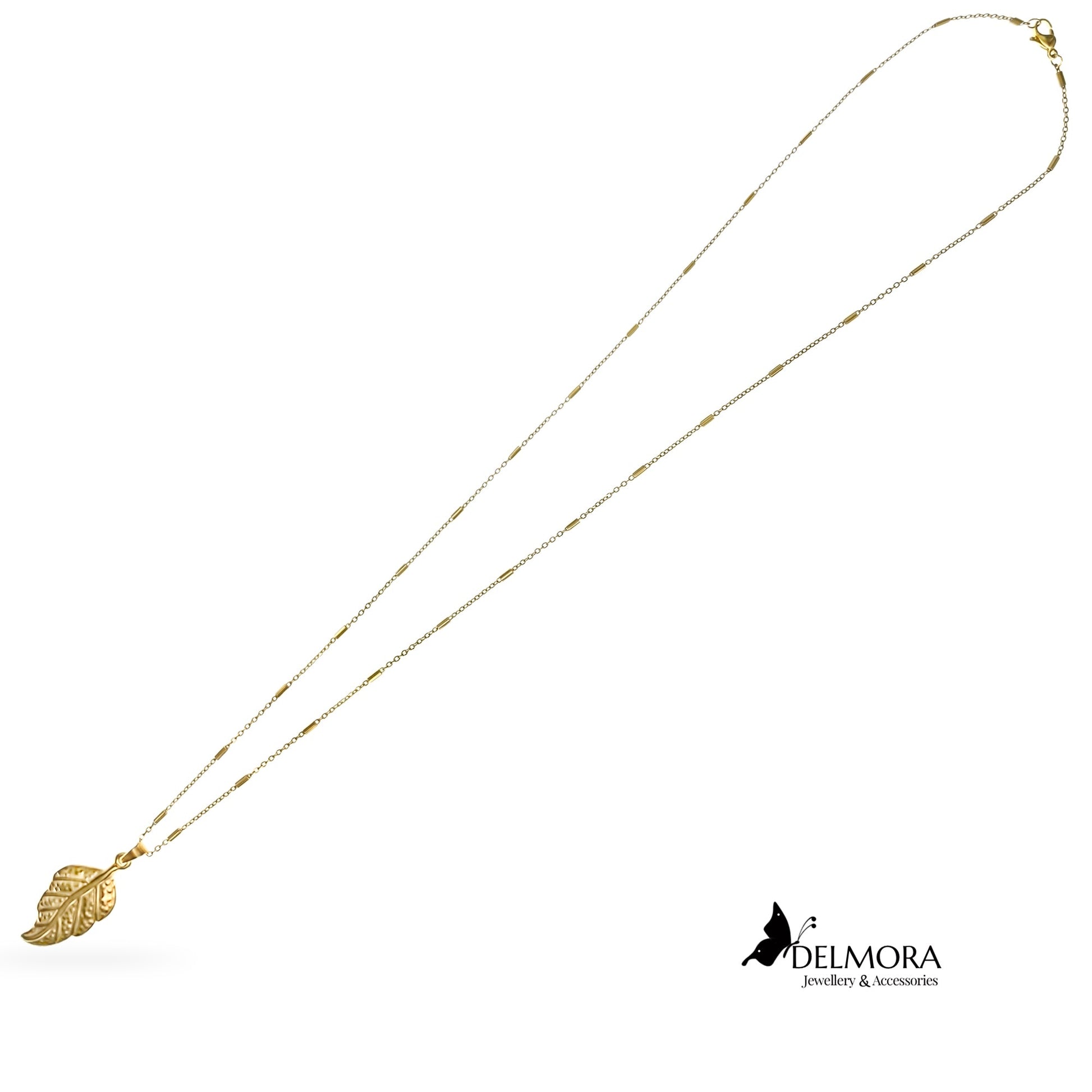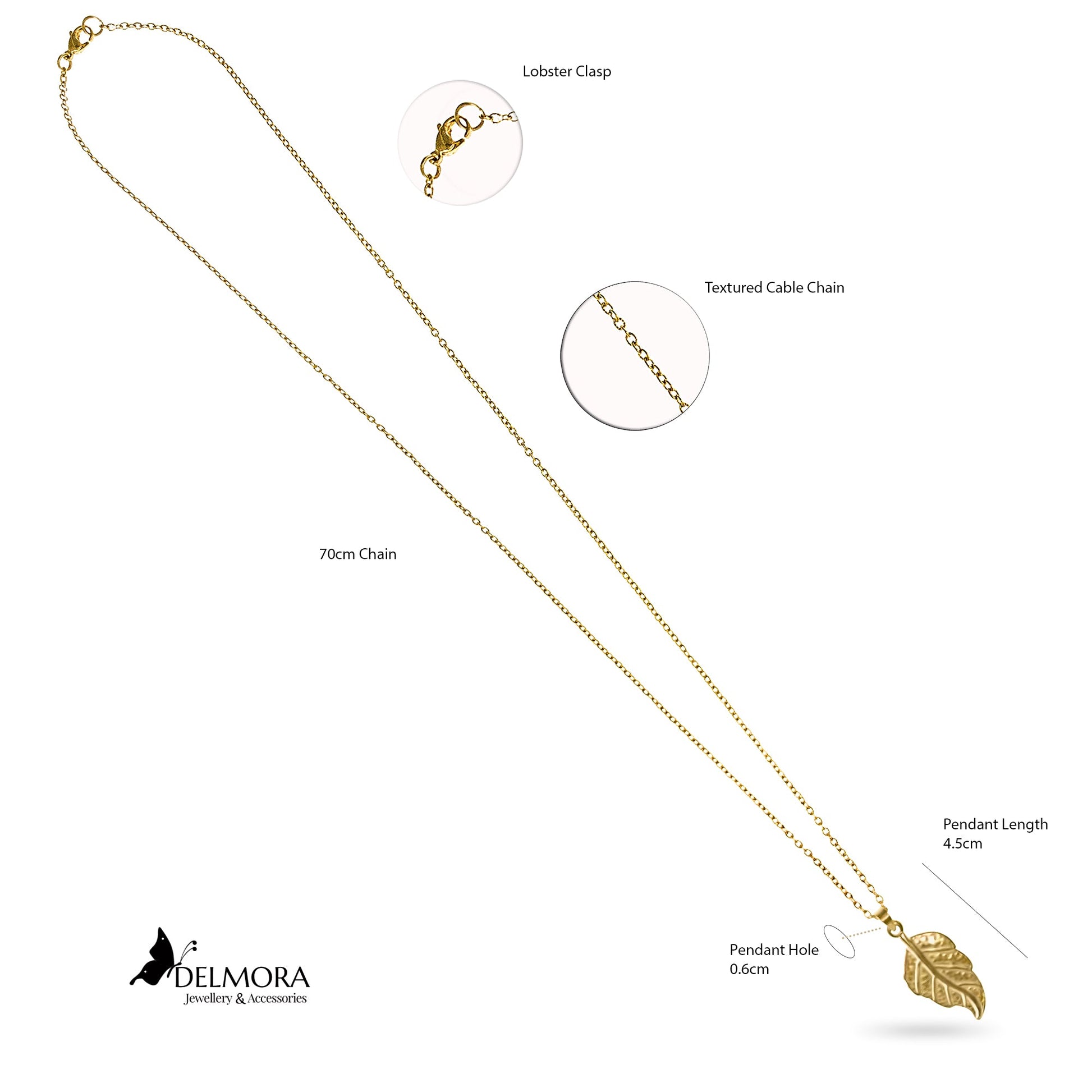 This fabulous necklace has a textured cable chain and an autumn leaf-shaped pendant.