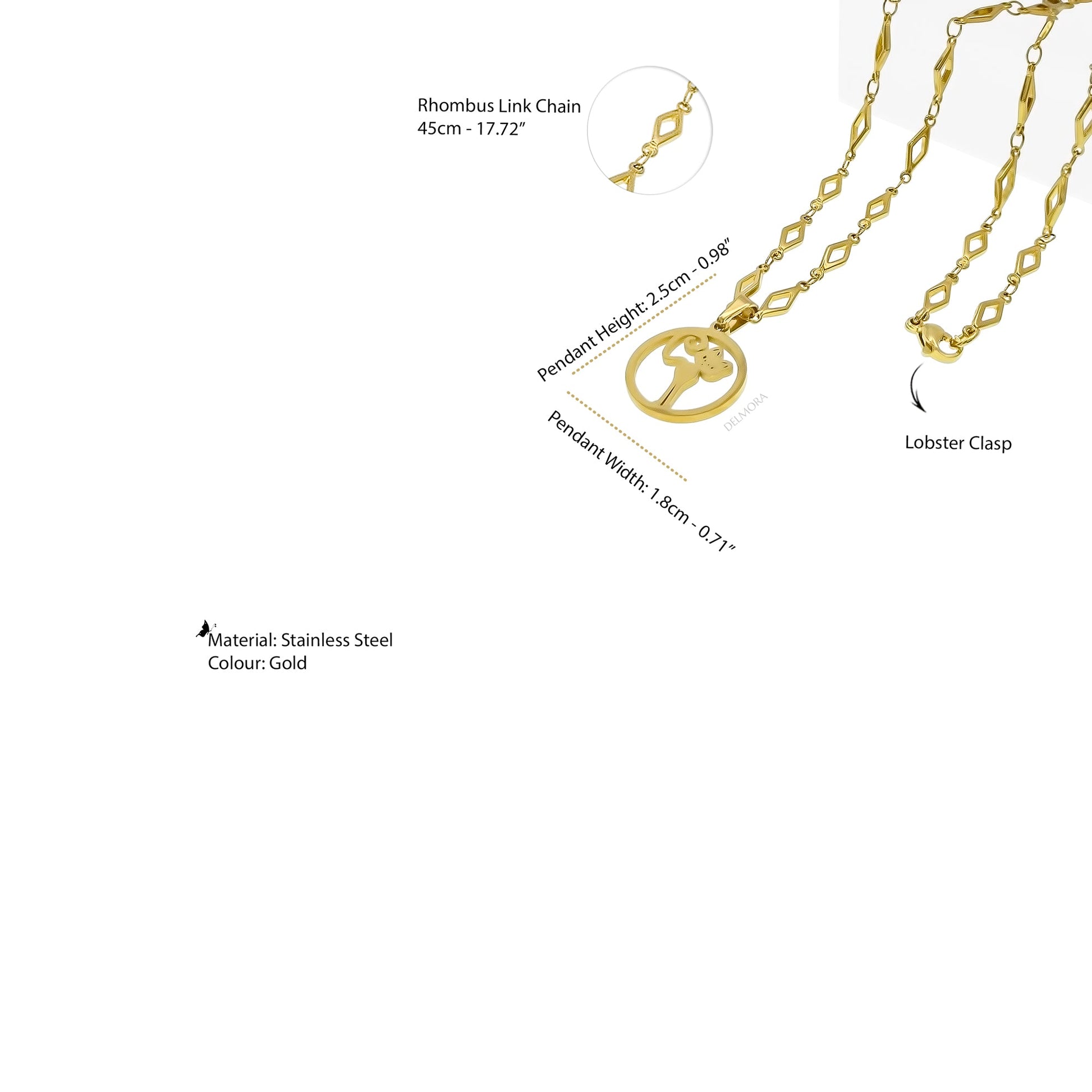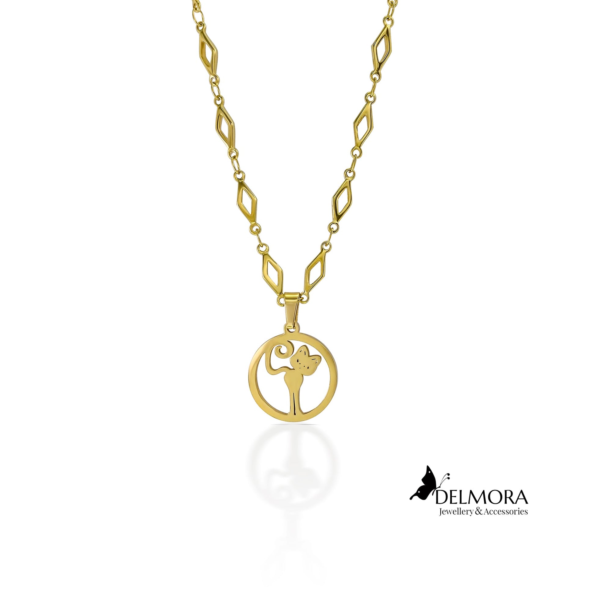 This fantastic necklace has a unique rhombus link chain and a rounded pendant with an?adorable?cat inside it. Cats are one of the most popular animals globally, and people worldwide associate them with good luck.