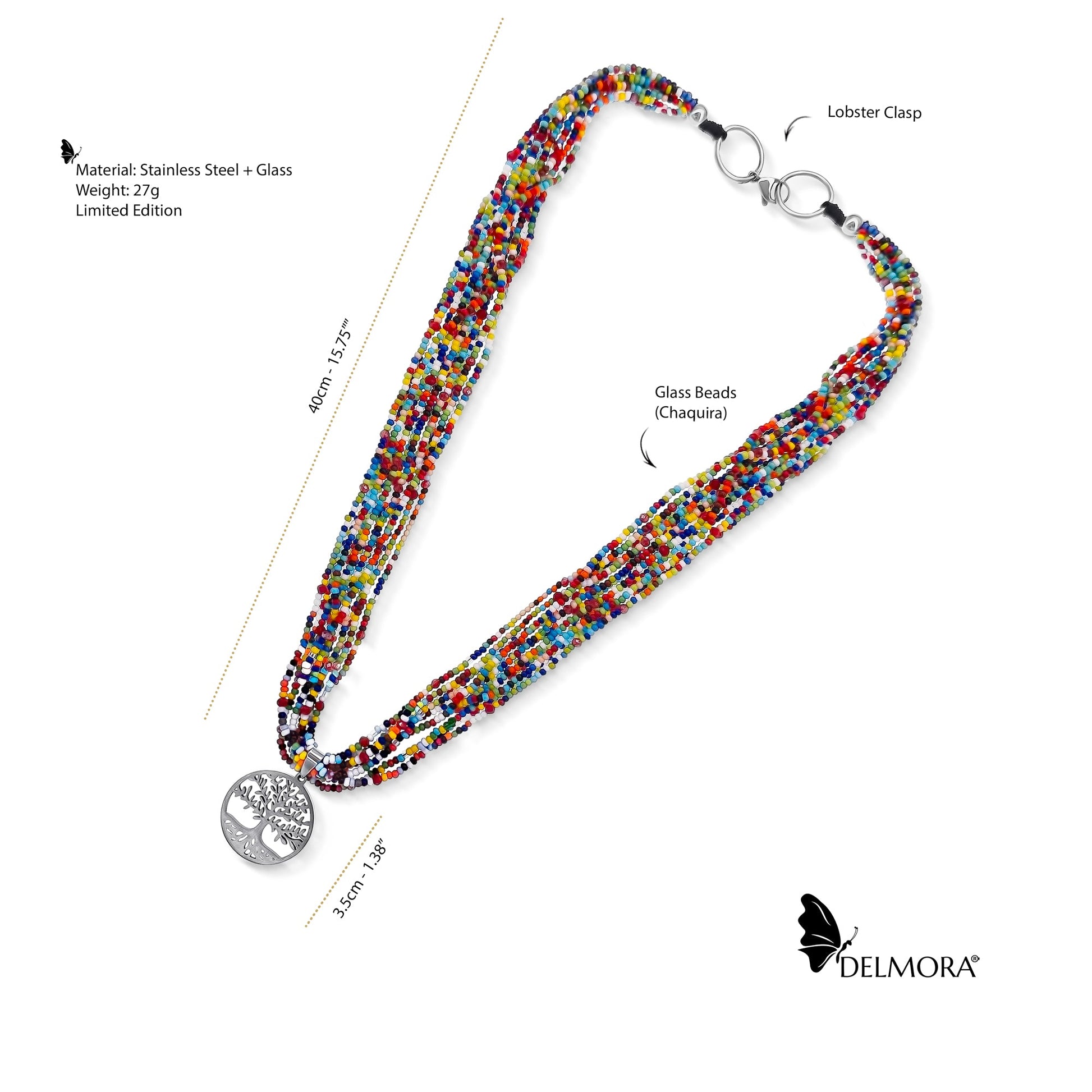 Adorned with traditional multicoloured glass beads known in Colombia as chaquiras, this set is perfect for everyday wear and can be paired effortlessly with any outfit.